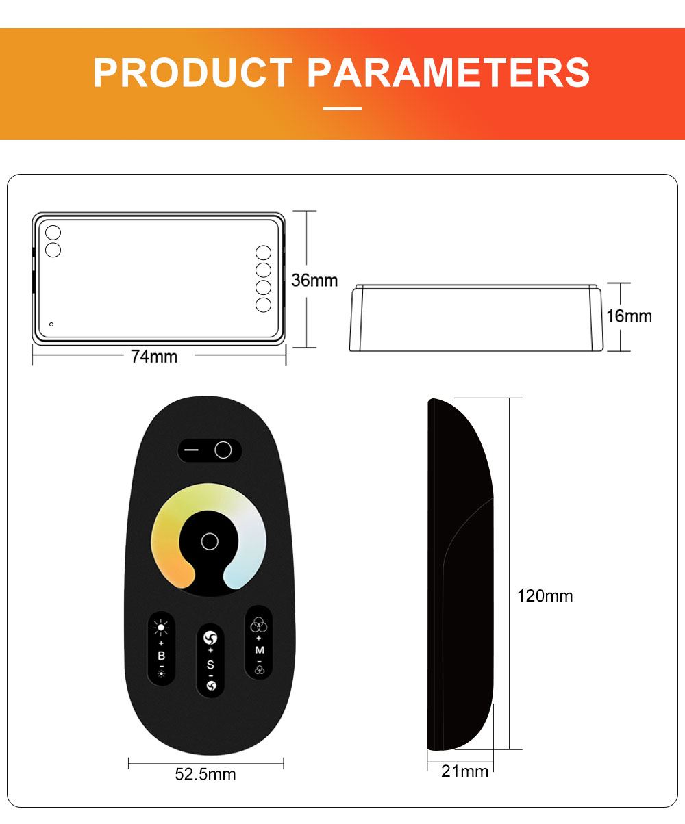 RC-01 2.4G 3 Zone Single Color Touch Remote