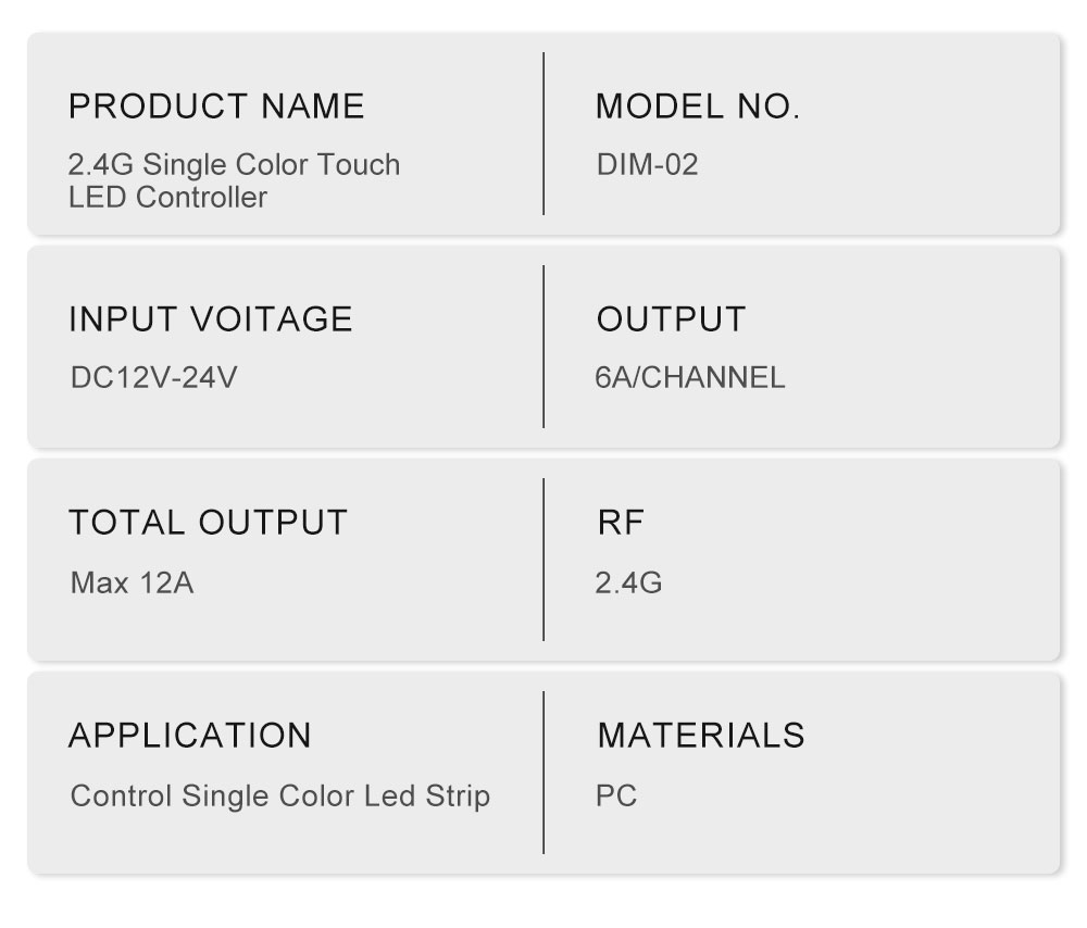 DIM-02 2.4G Single Color Touch LED Controller