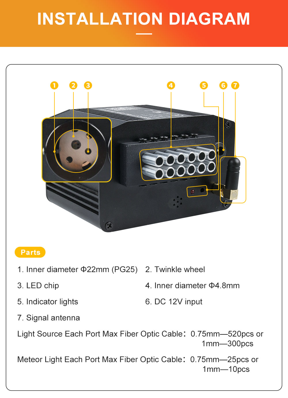 FO-P2 RGB+CCT Twinkle Fiber Optic illuminator with RGB Shooting Star