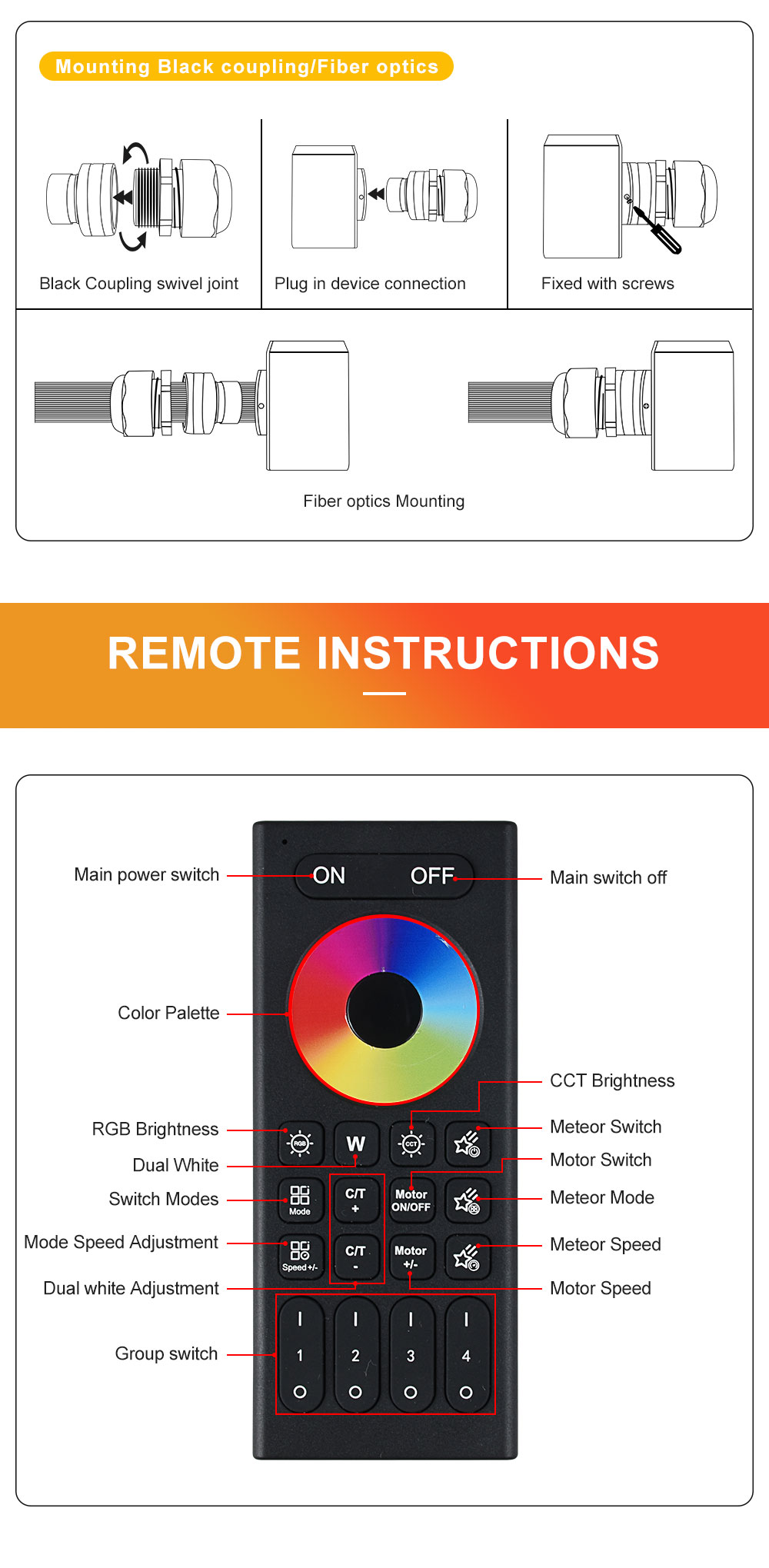 FO-P4 Mini Size RGB+CCT Fiber Optic illuminator with RGB Shooting Star